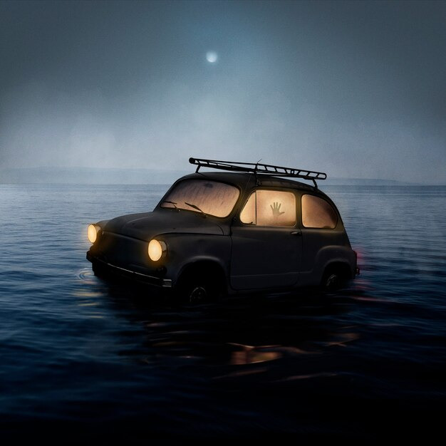 어두운 밤에 차가 물에 빠지는 꿈은 불확실한 미래나 두려움을 의미할 수 있습니다. 앞으로의 방향을 명확히 설정하는 것이 중요합니다.