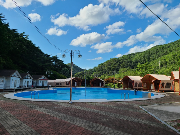 캠핑장 내에는 여름철 시원하게 이용할 수 있는 넓은 수영장이 마련되어 있어 아이들과 함께 물놀이를 즐기기에 좋으며, 숯불 바베큐와 불멍이 가능한 공간이 마련되어 있어 캠핑의 낭만을 한층 더해줍니다. 아침 조식 서비스도 제공되어 보다 편안한 캠핑을 즐길 수 있습니다.
