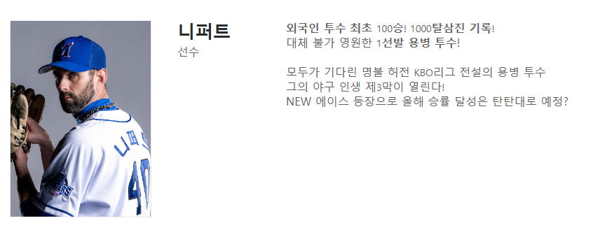 니퍼트는 은퇴 후에도 여전히 야구계에 큰 관심과 열정을 가지고 있으며, 최근 예능 프로그램 '푹 쉬면 다행이야'를 통해 팬들과 다시 만나게 되었습니다.