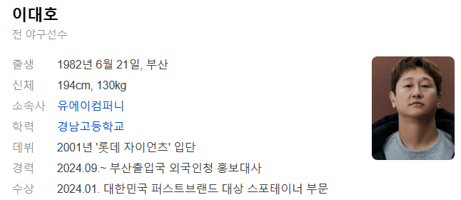 이대호 프로필과 개인 정보