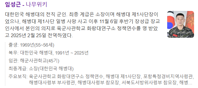 전 해병대 제 1사단장 임성근 프로필 / 나이 / 고향 / 군경력 / 학력 / 채상병 사건 / 나무위키