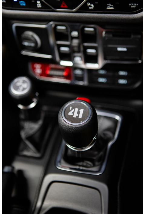 실내는 외관과 조화를 이루며 밀리터리 감성을 그대로 전달합니다. 황갈색 천 시트와 올리브 드랍 색상의 대시보드 패널이 적용되었으며, 변속기 레버에는 ‘41 배지가 새겨져 차량의 특별함을 부각시킵니다. 또한, 바디컬러 하드톱, Sky One-Touch 전동 소프트톱, 황갈색 소프트톱 등 다양한 옵션을 제공해 선택의 폭을 넓혔습니다.