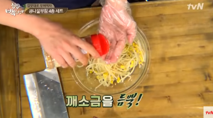 양념이 골고루 섞였다면 마지막으로 참기름과 참깨를 넣어 고소한 향과 풍미를 더합니다. 기호에 따라 감칠맛을 더해주는 미원을 아주 소량 첨가하면 백종원 콩나물무침 특유의 깊은 맛이 살아납니다.