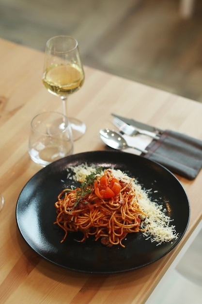 먼저 냄비에 물을 넉넉히 끓이고 소금을 한 스푼 넣습니다. 그 위에 스파게티 면을 넣고 알단테로 삶아줍니다. 알단테는 면의 중심에 약간 심이 남아 있는 상태로, 이후 팬에서 다시 조리될 것을 고려해 너무 익히지 않는 것이 좋습니다. 면이 익으면 체에 받쳐 물기를 빼고 올리브유 약간을 뿌려 두면 면끼리 들러붙는 것을 방지할 수 있습니다.