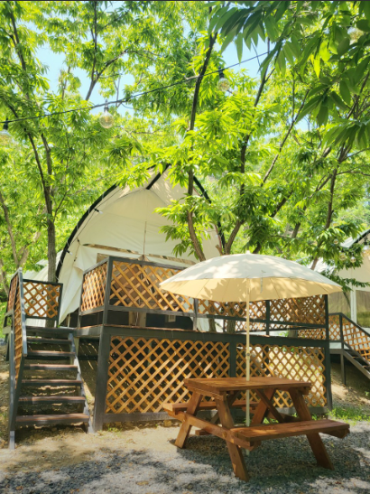 이곳은 다양한 글램핑 객실을 제공하며, 각 객실은 고급스러운 인테리어와 함께 침구, 욕실, 주방시설 등 모든 편의시설이 완비되어 있어 쾌적한 숙박을 보장합니다.