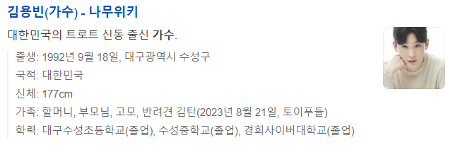 가수 김용빈은 어린 시절부터 음악적 감각을 인정받아 ‘트로트 신동’이라 불렸습니다. 대구광역시에서 태어나 성장한 그는 어릴 때부터 다양한 무대에 올라 경험을 쌓았으며, 현재는 오랜 경력을 바탕으로 트로트 무대를 빛내고 있습니다.