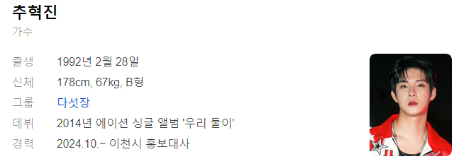 추혁진은 1992년 2월 28일생으로 올해 32세입니다. 경기도 이천시에서 태어나 어린 시절부터 음악에 대한 꿈을 키워왔습니다. 백제예술대학교에서 음악을 전공하며 본격적으로 가수의 길을 걷기 시작했습니다.