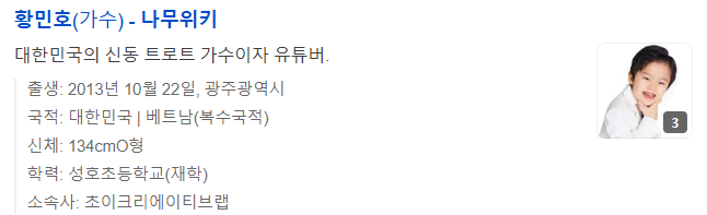 황민호는 2013년 10월 22일 광주광역시에서 태어난 대한민국과 베트남의 복수 국적을 가진 가수다.