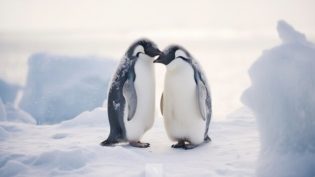 펭귄이 눈밭에서 자유롭게 노는 모습은 순수한 즐거움과 긍정적인 에너지를 의미합니다.