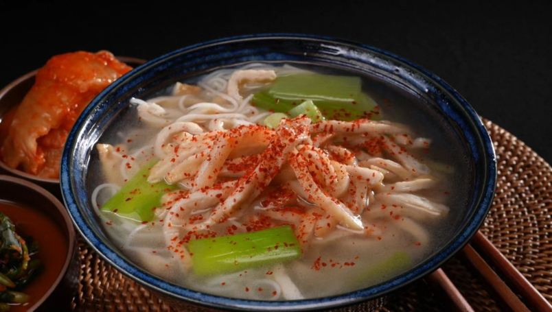 그릇에 소면을 담은 후, 뜨거운 육수를 두세 번 끼얹고 따라내는 ‘토렴’ 과정을 거치면 면발이 따뜻해지면서 육수와 더 잘 어우러집니다. 이 과정을 통해 국수의 전체적인 완성도를 높일 수 있습니다.
