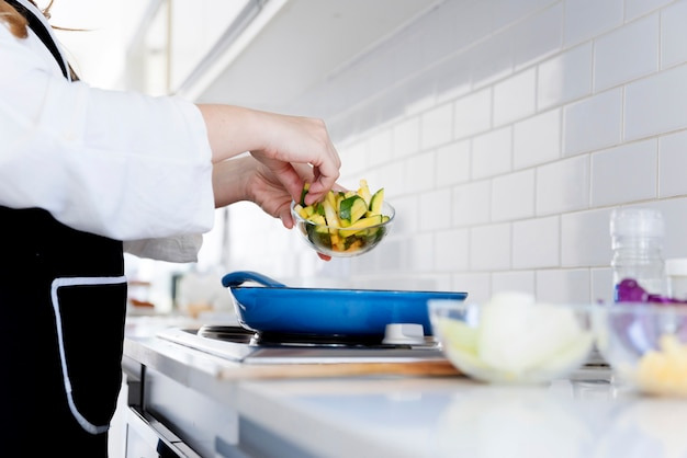 삶아둔 파스타면을 팬에 넣고 크림소스와 잘 섞어줍니다. 이때 크림소스가 꾸덕꾸덕해질 때까지 졸이는 것이 중요하며, 너무 졸아들 경우 파스타 삶은 물이나 우유, 생크림을 소량 추가해 농도를 조절해 주세요.