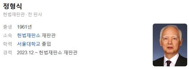 정형식 재판관은 2023년 12월 18일 윤석열 대통령에 의해 헌법재판소 재판관으로 임명되었습니다.