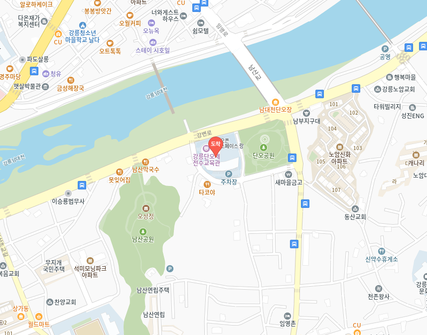 내비게이션 : “강릉단오제전수교육관” 또는 “강원특별자치도 강릉시 단오장길 1”로 검색해 주세요.