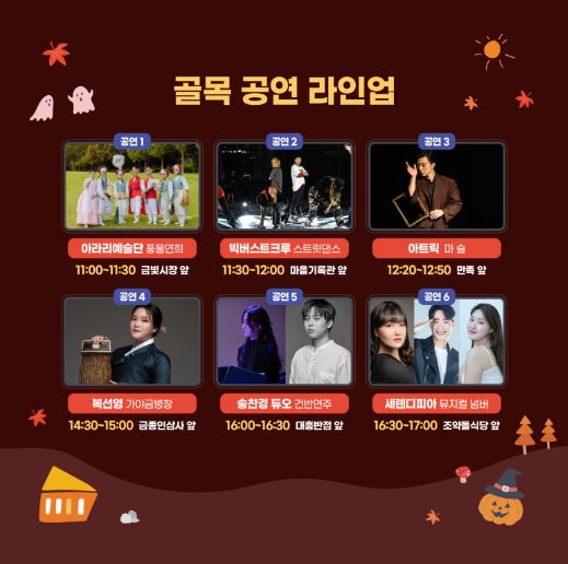 오전 11시부터 오후 5시까지 다양한 공연이 축제장을 더욱 풍성하게 만듭니다.