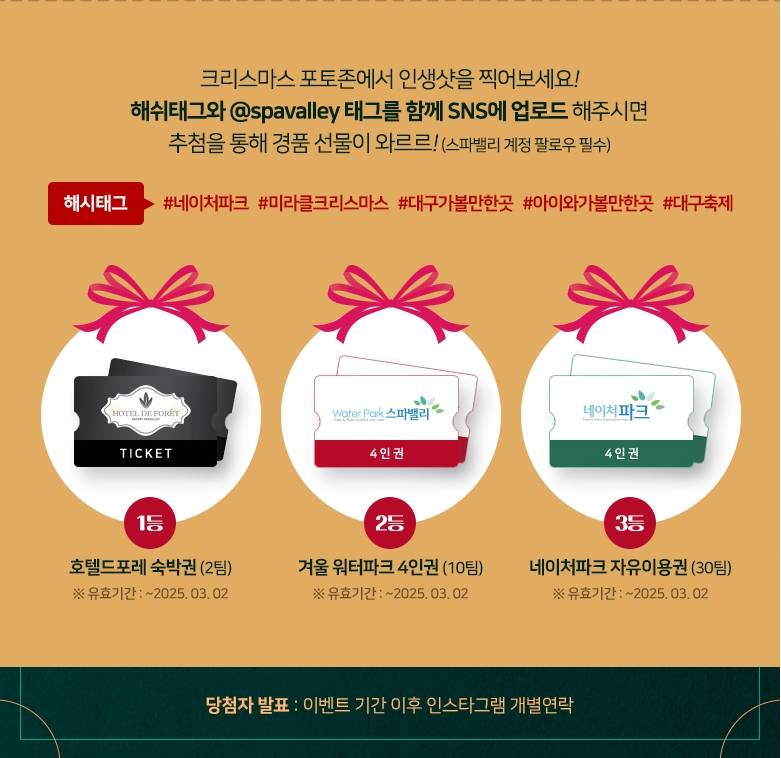 올겨울, 특별한 추억을 만들고 싶다면 대구 네이처파크의 ‘미라클 크리스마스 2024’ 행사를 놓치지 마세요. 사랑하는 사람들과 함께 다채로운 프로그램과 볼거리를 즐기며 따뜻하고 아름다운 크리스마스를 맞이해 보시기 바랍니다.
