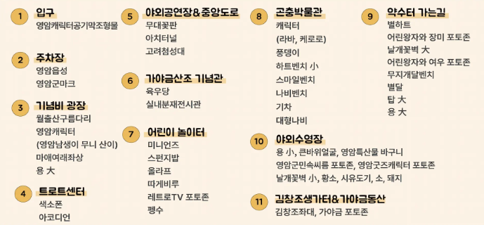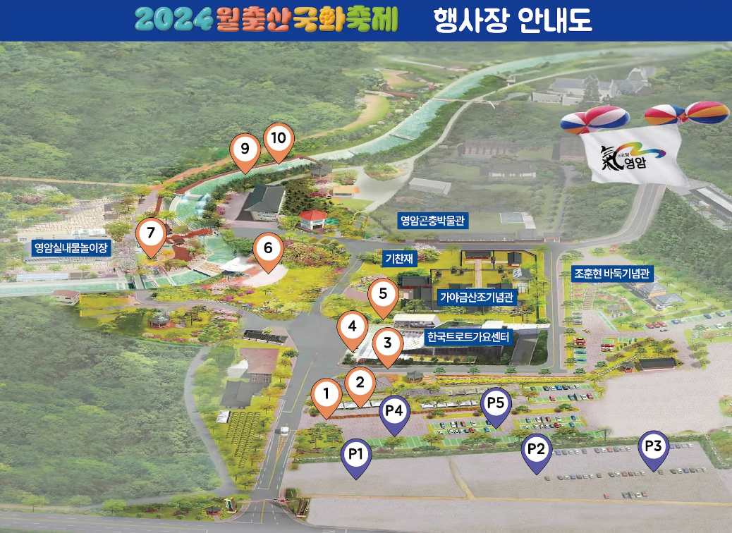 - 영암 캐릭터 공기막 조형물: 축제장 입구에 위치한 영암 캐릭터 조형물로, 귀여운 포토존에서 기념사진을 찍어보세요.
