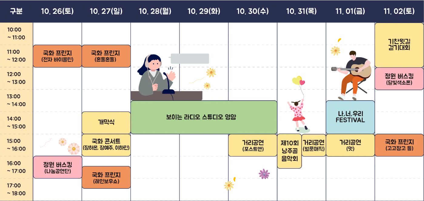 | 11월 8일 | 국화콘서트 (벤, 남동현) | 18:00 |