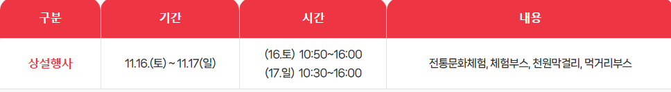 이번 축제 기간에는 다양한 프로그램과 이벤트가 마련되어 있으며, 가족 단위의 방문객들이 함께 즐길 수 있는 체험들이 풍성하게 준비되어 있습니다.
