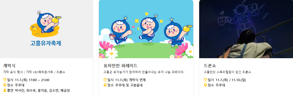 2024년 11월 제 4회 고흥 유자 축제 즐기기 / 일정 / 장소 / 프로그램 / 초대 가수 / 주차 정보