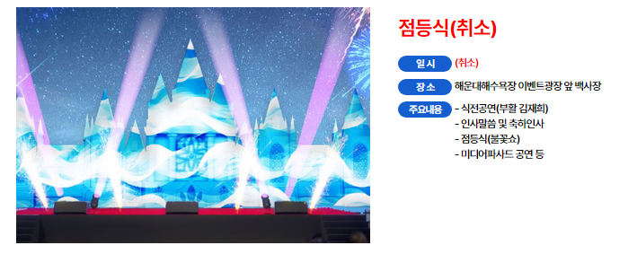 | 장소 | 해운대해수욕장 이벤트광장 앞 백사장 |