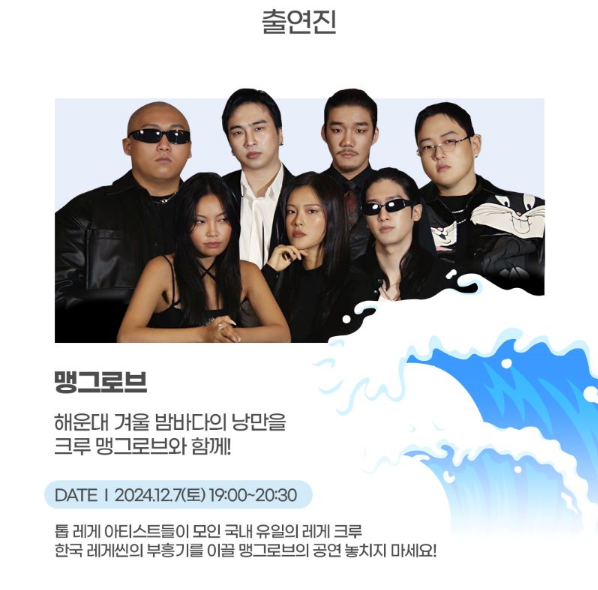 | 일정 | 전야행사 : 2024년 12월 6일(금) - Winter X 콘서트 본행사 : 2024년 12월 7일(토) - 북극곰 수영 대회 및 다양한 프로그램 마감행사 : 2024년 12월 8일(일) |