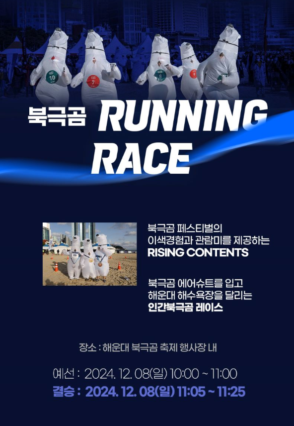 이번 해운대 북극곰 축제는 참가자들이 즐길 수 있는 다양한 프로그램과 이벤트로 구성되었습니다.