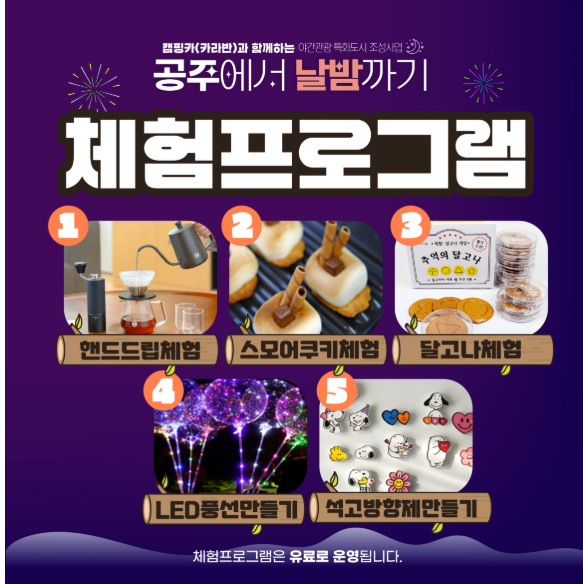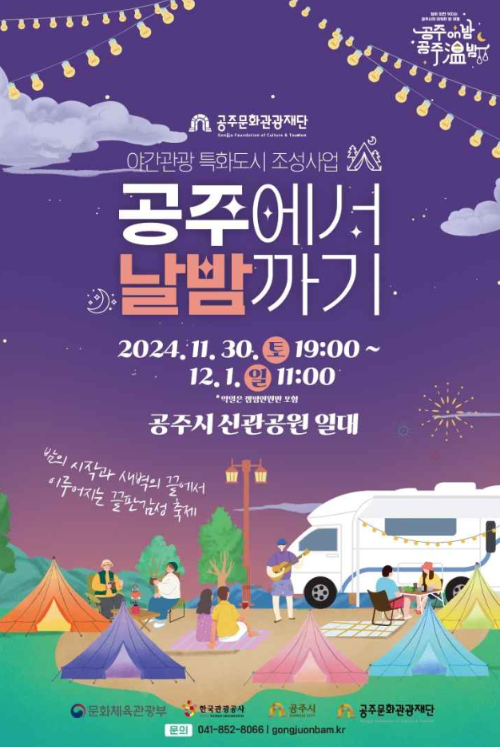 공주에서 열리는 특별한 야간 캠핑 축제에서 11월의 마지막 밤과 12월의 첫날을 낭만과 함께 맞이하세요. 금강 인근의 아름다운 자연 속에서 펼쳐지는 이번 축제는 캠핑 초보자부터 일반 방문객까지 모두가 즐길 수 있는 다채로운 프로그램과 따뜻한 먹거리를 제공합니다. 추운 겨울밤, 공주에서 뜨거운 밤을 보내며 특별한 추억을 만들어 보세요.