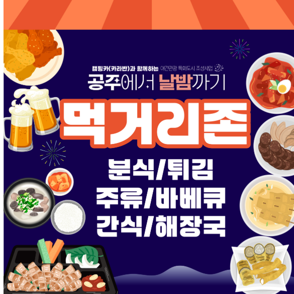 추운 날씨에 지친 몸을 녹여줄 따뜻한 먹거리가 준비되어 있습니다. 분식, 튀김, 바베큐, 해장국 등 다양한 음식과 주류를 즐기며 축제의 열기를 더해보세요.