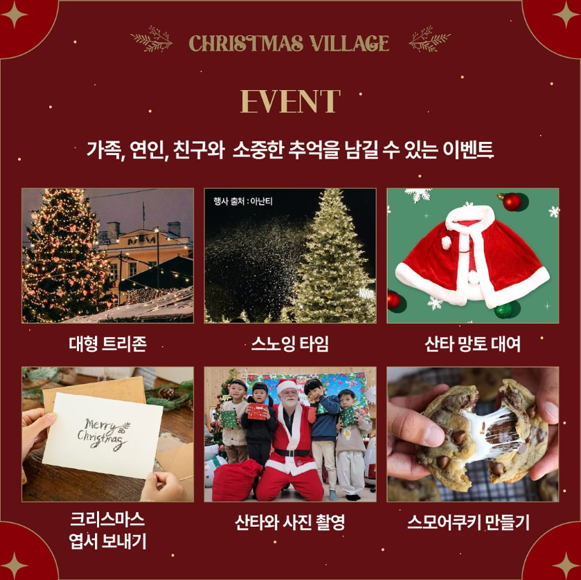 - 운영 시간 : 매주 금, 토, 일요일 및 크리스마스 이브와 당일 추가 운영