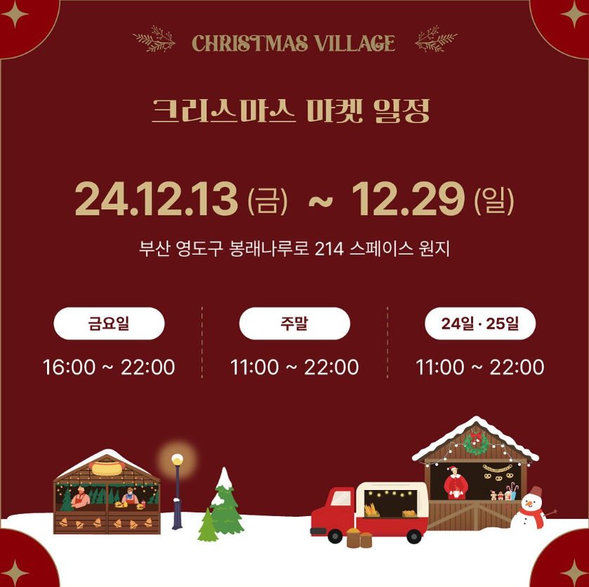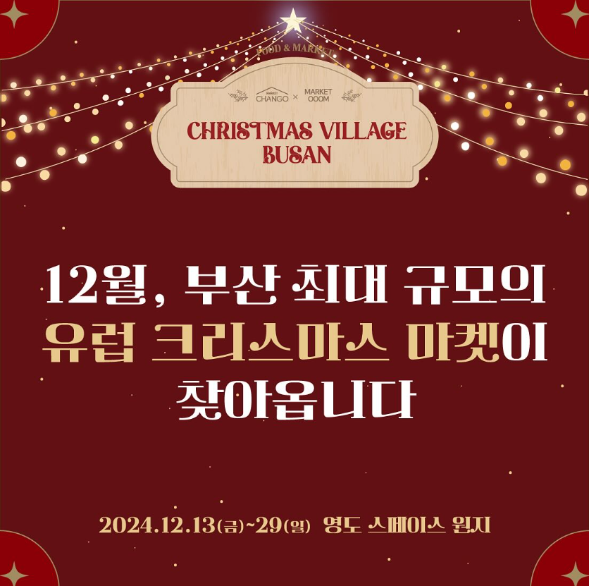2024년 부산에서 열리는 크리스마스 빌리지는 지역 청년 브랜드와 글로벌 푸드, 다양한 라이프스타일 아이템이 어우러져 독특한 경험을 선사합니다. 추운 겨울, 따뜻함과 즐거움을 동시에 느낄 수 있는 특별한 공간에서 사랑하는 사람들과 추억을 만들어보세요.