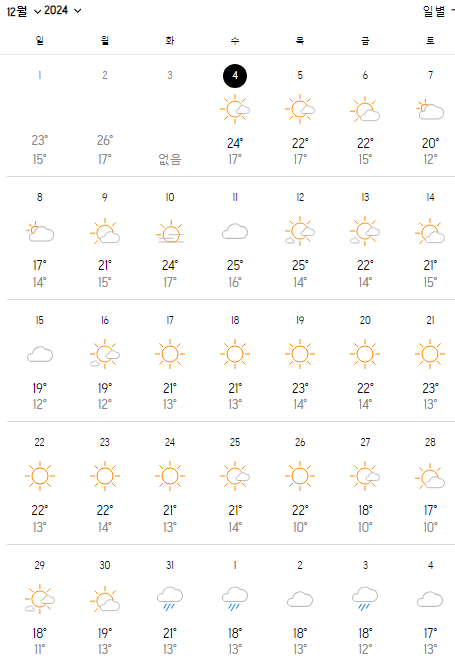 | 2024 태국 방콕 12월 날씨 / 옷차림 / 가 볼만한 곳 총정리 (0) | 2024.12.04 |