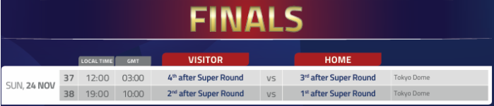 슈퍼라운드는 11월 21일부터 23일까지 도쿄돔에서 열리며, A조와 B조에서 각각 상위 두 팀이 진출해 경기를 치르게 됩니다. 이 라운드에서 각 조의 1위와 2위가 서로 교차하여 맞붙으며, 그 결과에 따라 결승 진출 팀이 결정됩니다.
