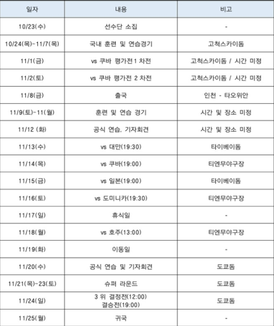 결승전과 동메달 결정전은 11월 24일 도쿄돔에서 진행되며, 동메달 결정전은 오후 12시, 결승전은 오후 7시에 시작됩니다. 이번 대회에서 한국이 결승에 진출한다면, 9년 만에 우승을 차지할 수 있는 기회로 큰 기대를 모으고 있습니다. 만약 한국과 일본이 결승에서 맞붙게 된다면 일본의 홈 팬 응원 속에서의 치열한 경합이 예상됩니다.