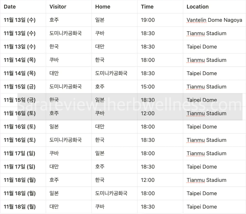 또한 SPOTV, KBS, MBC를 통해 TV 중계가 제공되며, 온라인에서는 SPOTV NOW, 네이버 스포츠, TVING 등 다양한 채널을 통해 경기를 시청할 수 있습니다. WBSC 공식 유튜브 채널에서도 일부 경기의 생중계가 진행될 예정입니다.