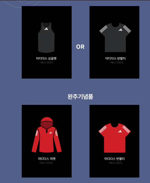 풀코스 참가자들은 ‘완주 자켓 패키지’와 ‘완주 티셔츠 패키지’ 중 선택하여 기념품을 받을 수 있습니다. 자켓 패키지와 티셔츠 패키지 중 원하는 것을 선택하시면 해당 패키지에 따라 접수비가 달라지니 참고하시기 바랍니다. 특히 자켓 패키지는 실용성과 퀄리티가 높은 완주 기념 자켓으로 구성되어 있어, 참가자들 사이에서 높은 인기를 끌 것으로 예상됩니다.
