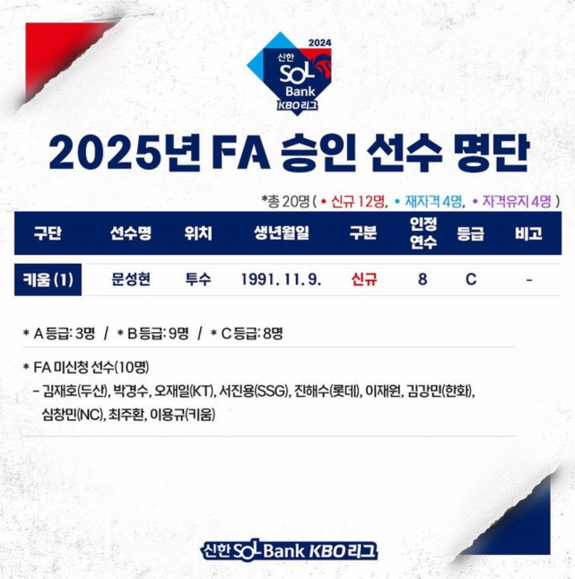 2025년 FA 승인 선수 명단