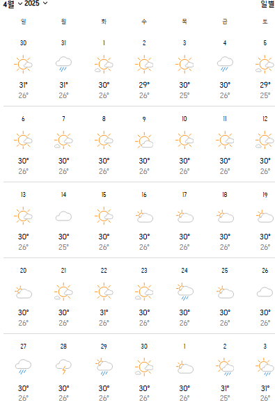 2025년 4월 괌의 날씨