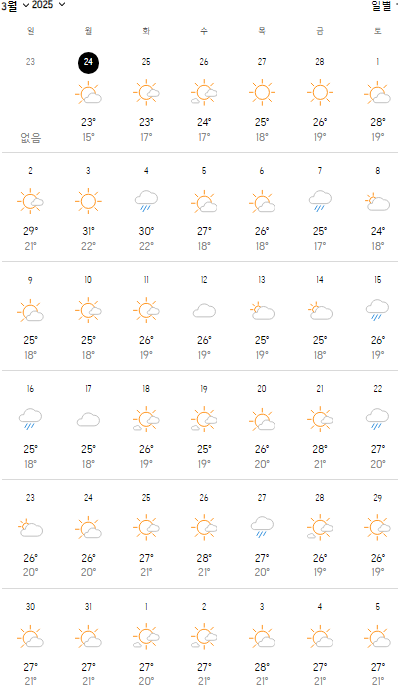 2025년 3월 대만 가오슝의 기온과 날씨