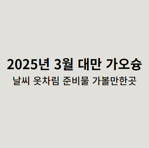 | 2025 대만 타이중 3월 여행 꿀팁 / 날씨 / 옷차림 / 준비물 / 가 볼만한 곳 총 정리✅ (0) | 2025.02.24 |