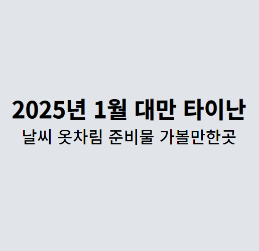 | 2025 대만 타이중 1월 날씨 / 옷차림 / 준비물 / 가 볼만한 곳 총 정리✅ (0) | 2024.12.27 |