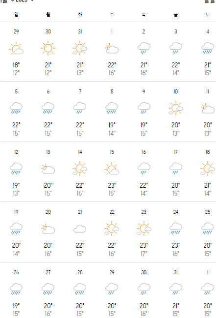 1월 말 16°C 19°C 25mm