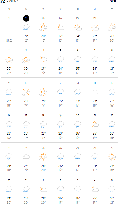 2025년 3월 대만 화련 날씨
