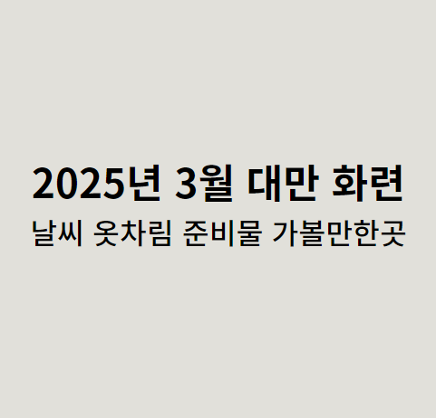 | 2025 대만 타이난 3월 여행 꿀팁 / 날씨 / 옷차림 / 준비물 / 가 볼만한 곳 총 정리✅ (0) | 2025.02.24 |