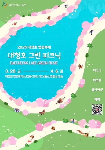 대청호를 바라보며 즐길 수 있는 피크닉존이 운영되며, 벚꽃 라떼, 벚꽃 와플, 다양한 길거리 음식이 준비됩니다.