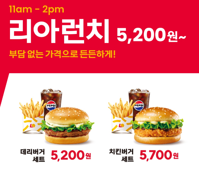 점심시간(오전 11시~오후 2시)에는 특정 인기 메뉴를 할인된 가격으로 제공합니다. 해당 프로모션은 매장에서만 적용되며, 일부 매장은 제외될 수 있습니다.