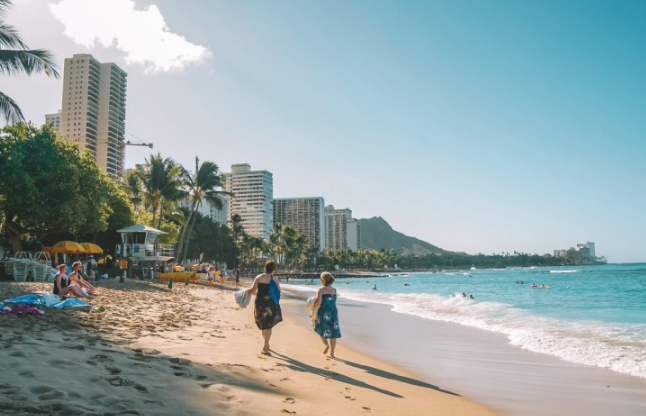 와이키키 비치는 하와이에서 가장 유명한 해변으로, 에메랄드빛 바다와 고운 백사장이 인상적입니다. 다양한 해양 스포츠를 즐길 수 있으며, 주변에는 쇼핑몰과 레스토랑이 많아 편리하게 여행을 즐길 수 있습니다.