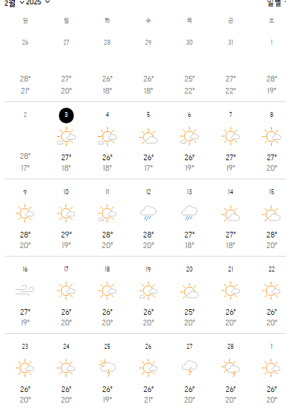 2025년 2월 미국 하와이의 날씨