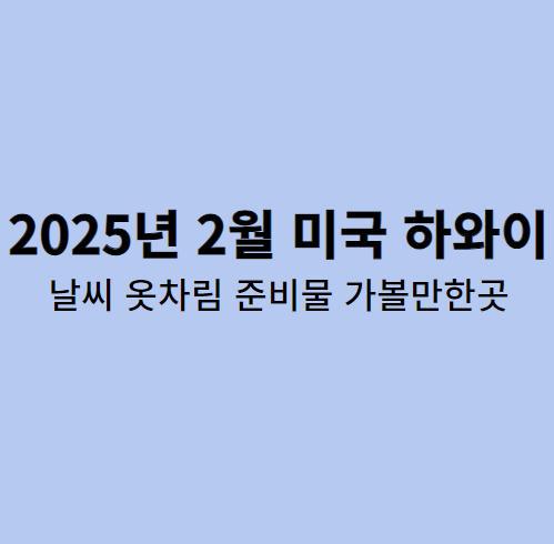 | 2025 미국 하와이 3월 여행 꿀팁 / 날씨 / 옷차림 / 준비물 / 가 볼만한 곳 총 정리✅ (0) | 2025.02.17 |