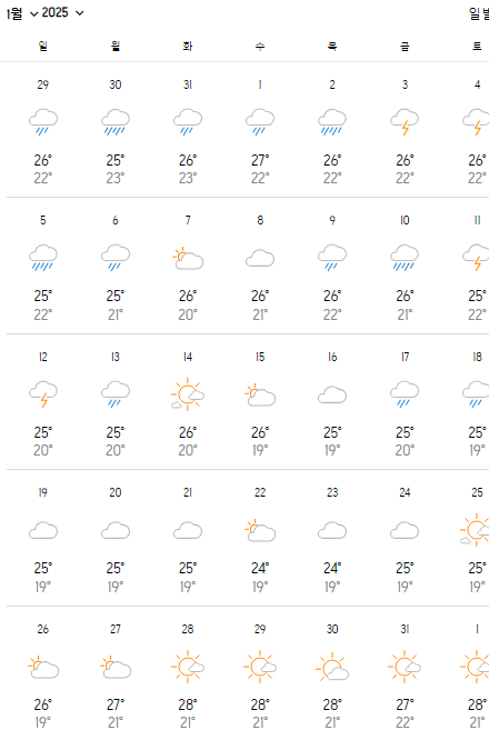 2025년 1월 베트남 나트랑의 날씨