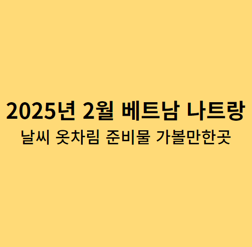 베트남의 인기 여행지 나트랑은 2월에 방문하기에 아주 좋은 시기입니다. 이번 글에서는 2025년 2월 나트랑의 날씨, 옷차림, 여행 준비물, 그리고 꼭 가볼 만한 장소 세 곳에 대해 상세히 알려드리겠습니다. 여행 계획을 세우시는 분들께 유용한 정보가 되기를 바랍니다.
